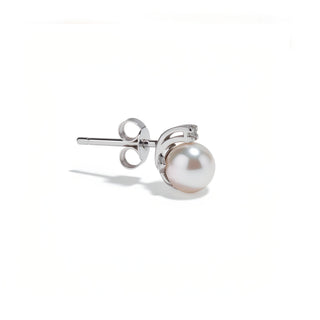 Stud Earrings with 6.5mm Japanese Pearl and 0.04 ct Diamond