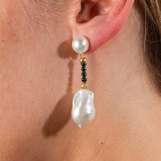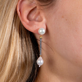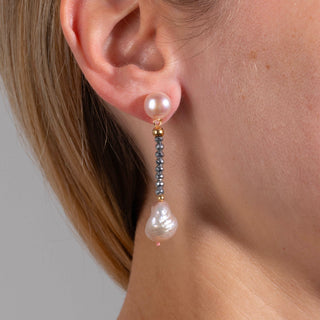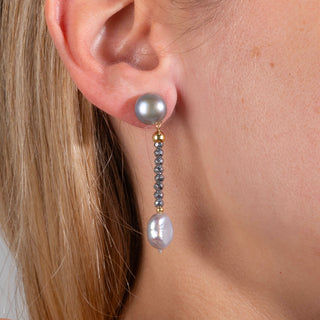 Hematite, Gray Pearl, and 18 kt Gold Drop Earrings - My Dinner Earrings
