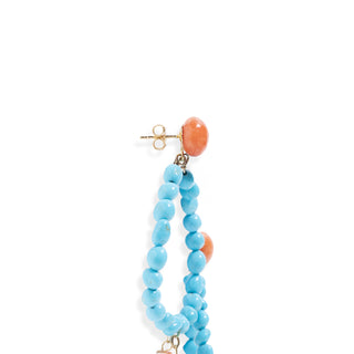 Hoop Earrings with Turquoise, Red Coral and 18kt Gold Stones