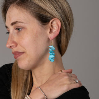 Hand-Carved Natural Turquoise Rose Earrings with 18KT Gold Back